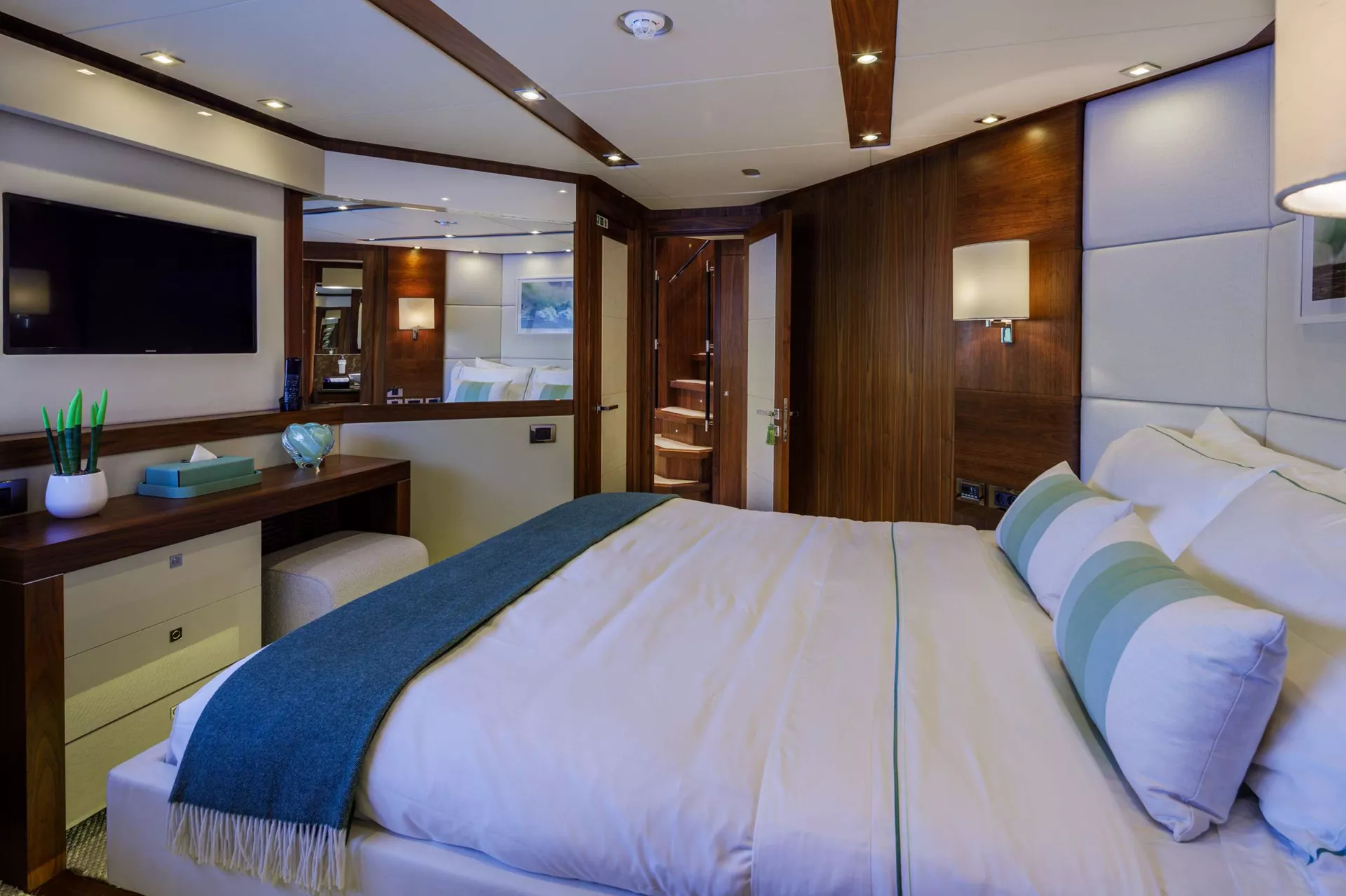 Two VIP Cabins with ensuite facilities and walk in wardrobes.