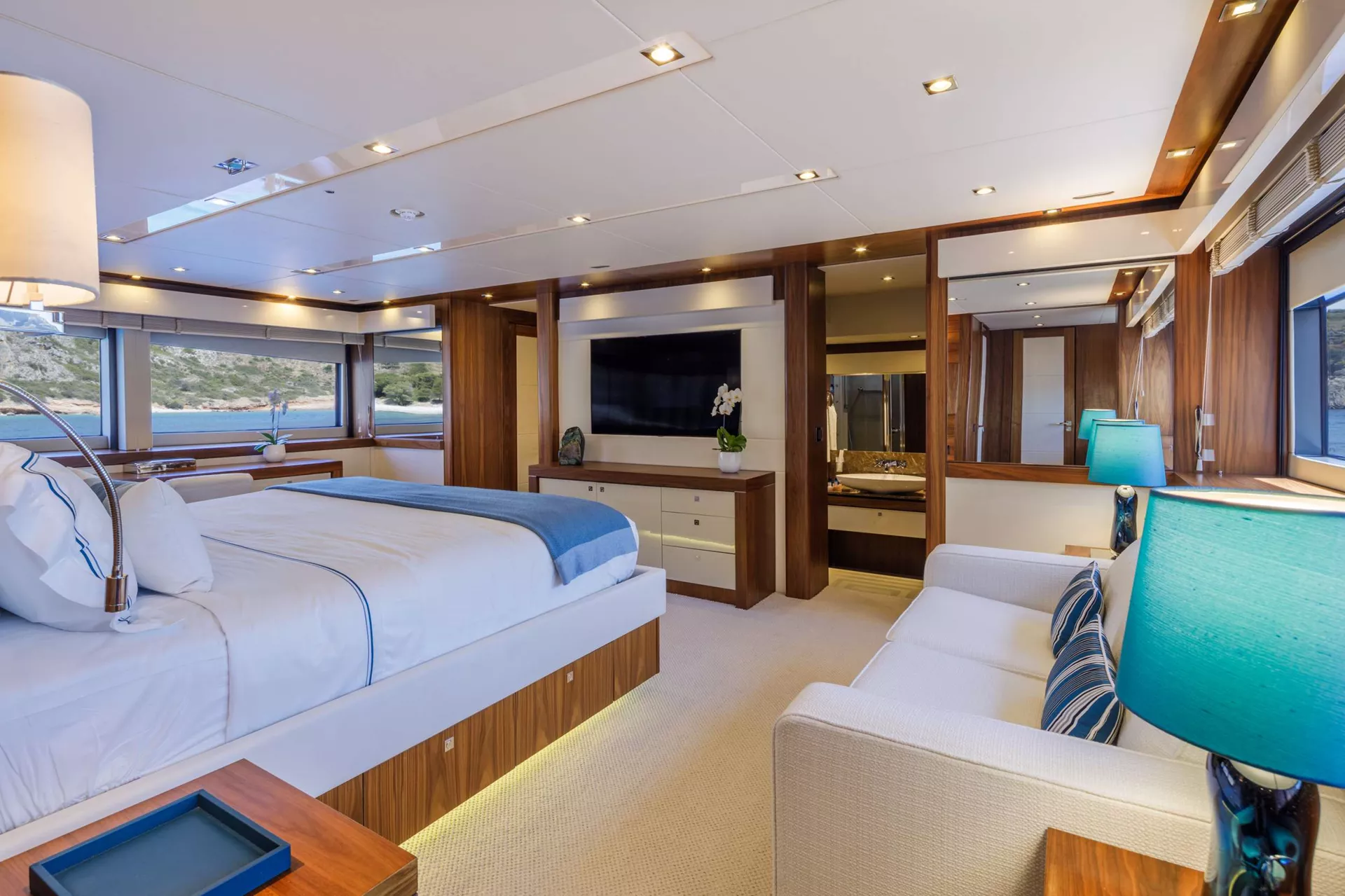 Smart TVs in main salon and all cabins